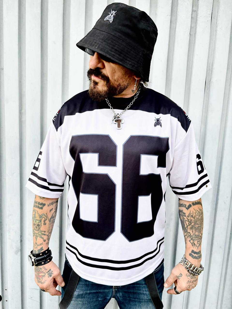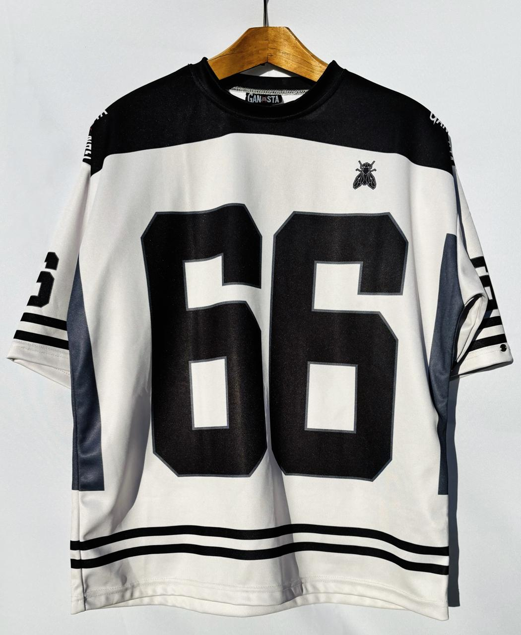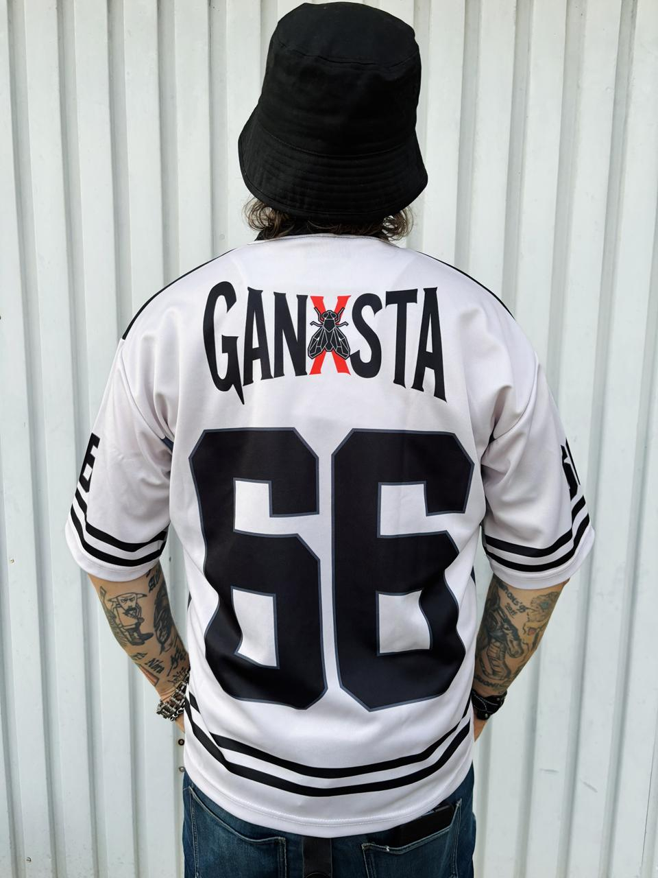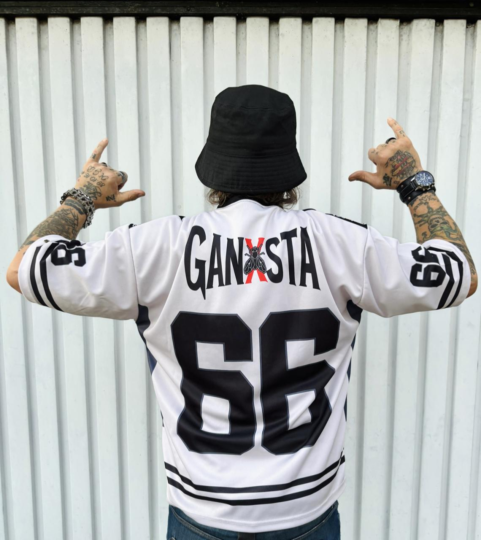 Ez a jersey egy igazi hip-hop mez, ami a rap világ energiáját hozza el Neked. Az oversized szabás és a markáns 66-os szám azonnal kiemel a tömegből. Elöl a legendás légy logó kapott helyet, hátul az ikonikus GANXSTA felirat üzen mindenkinek, a vállakon ismétlődő Ganxsta print pedig erőt ad a megjelenésednek.
