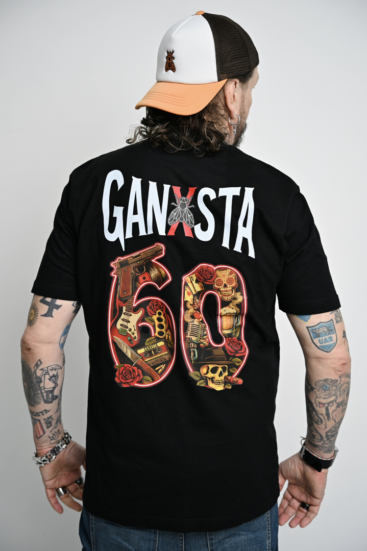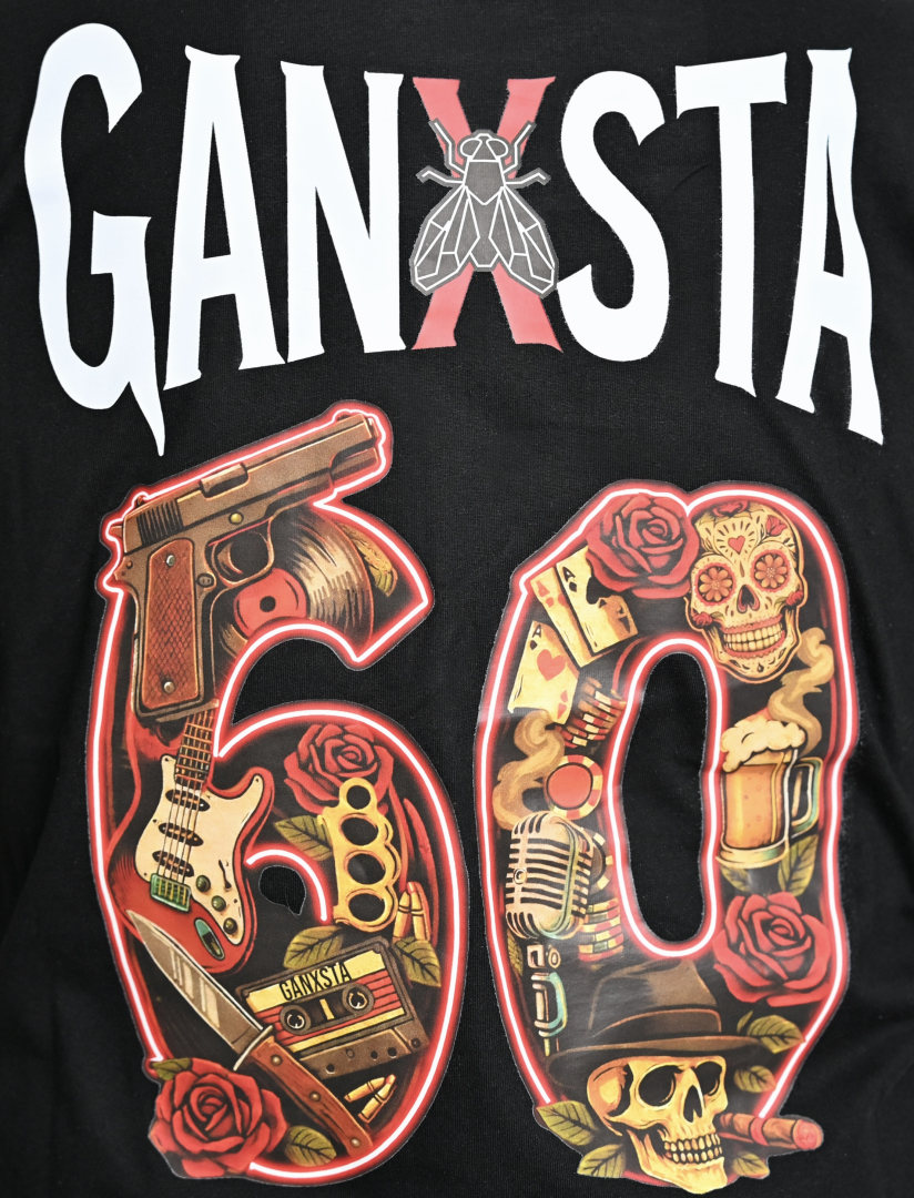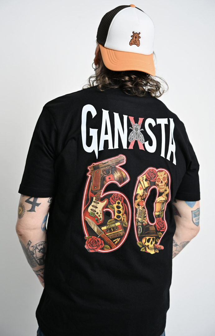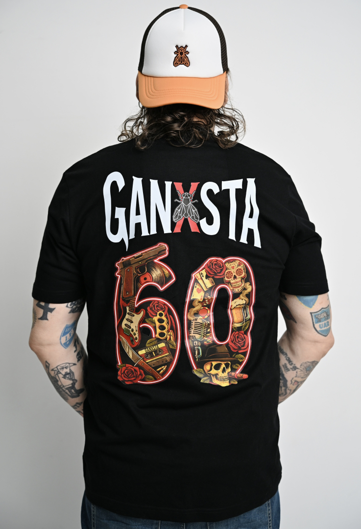 Elöl a klasszikus, hímzett légy logó, a hátán a jubileumi „60” grafika: benne minden, ami az elmúlt évtizedeket jelenti: zene, életérzés, Ganxsta világ.