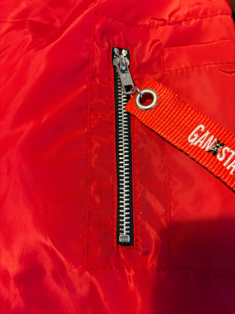 • Egyedi részletek: piros Ganxsta szalag az ujjon és légy logós zipzárhúzó.