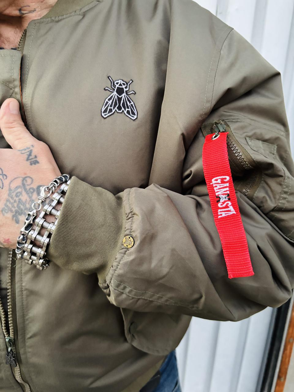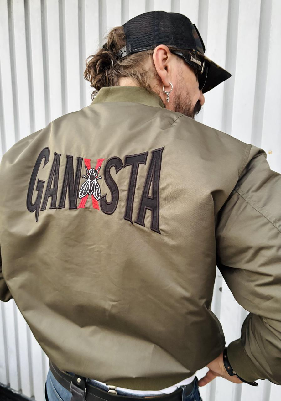 Ez az army green bomber nem csak kabát, hanem maga a Ganxsta életérzés. Elöl a legendás légy hímzés fogad, hátul pedig az ikonikus, extra méretű GANXSTA felirat üzen minden irányba: itt a stílus, amit nem lehet figyelmen kívül hagyni. Az ujjon a piros szalag hímzett Ganxsta logóval és a különleges légy logós cipzárhúzó olyan részletek, amik mindenkit megállítanak az utcán. Belül a narancssárga bélés teszi teljessé az igazi klasszikus bomber hangulatot. Ez az a darab, amihez nem kell magyarázat.