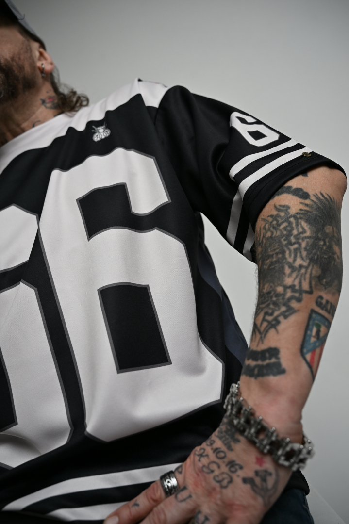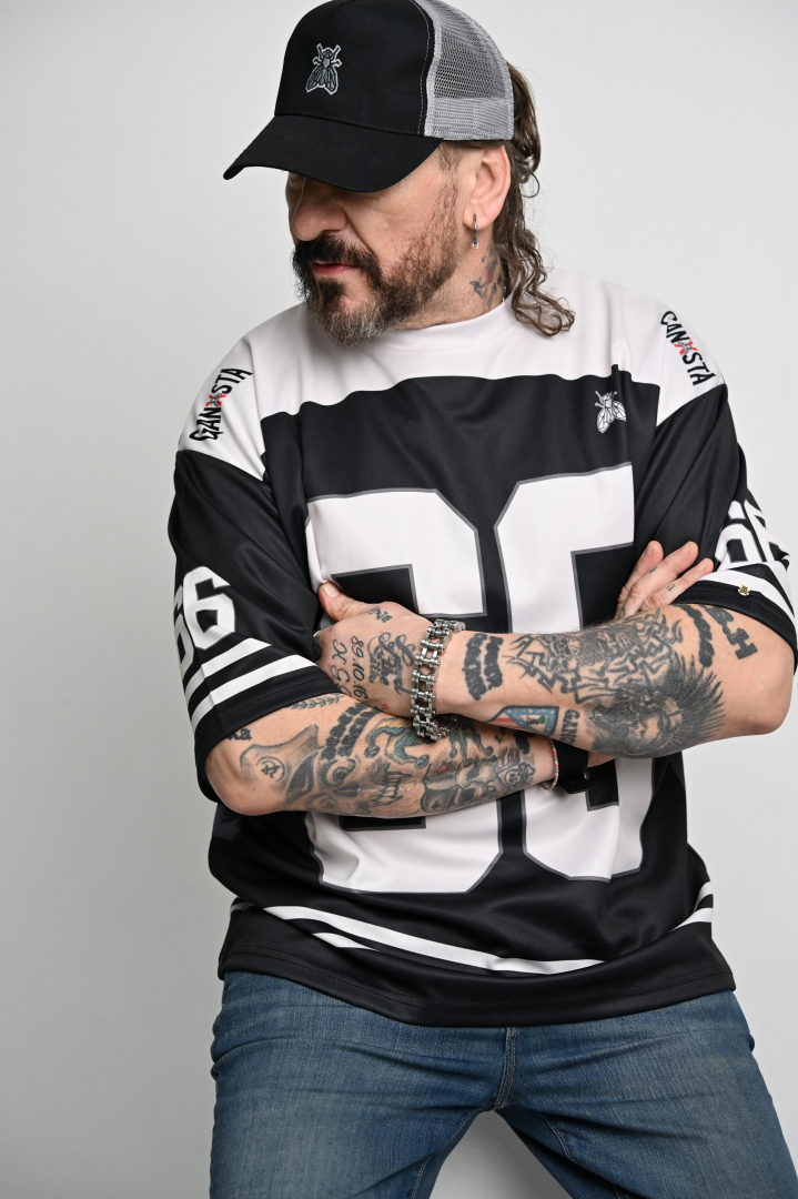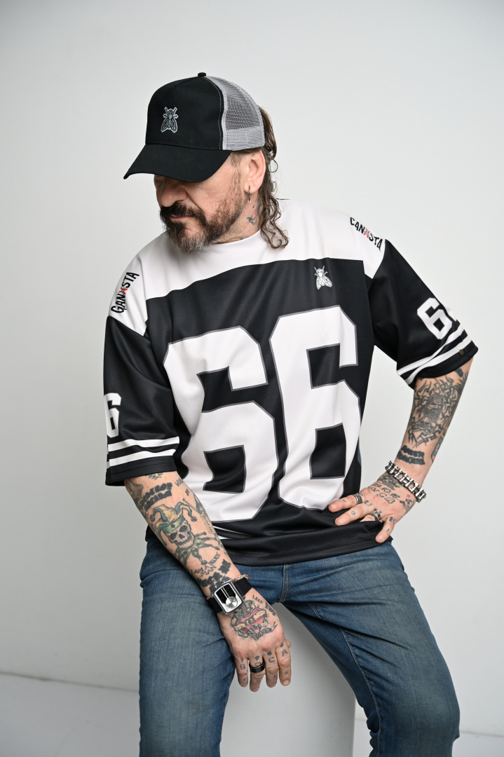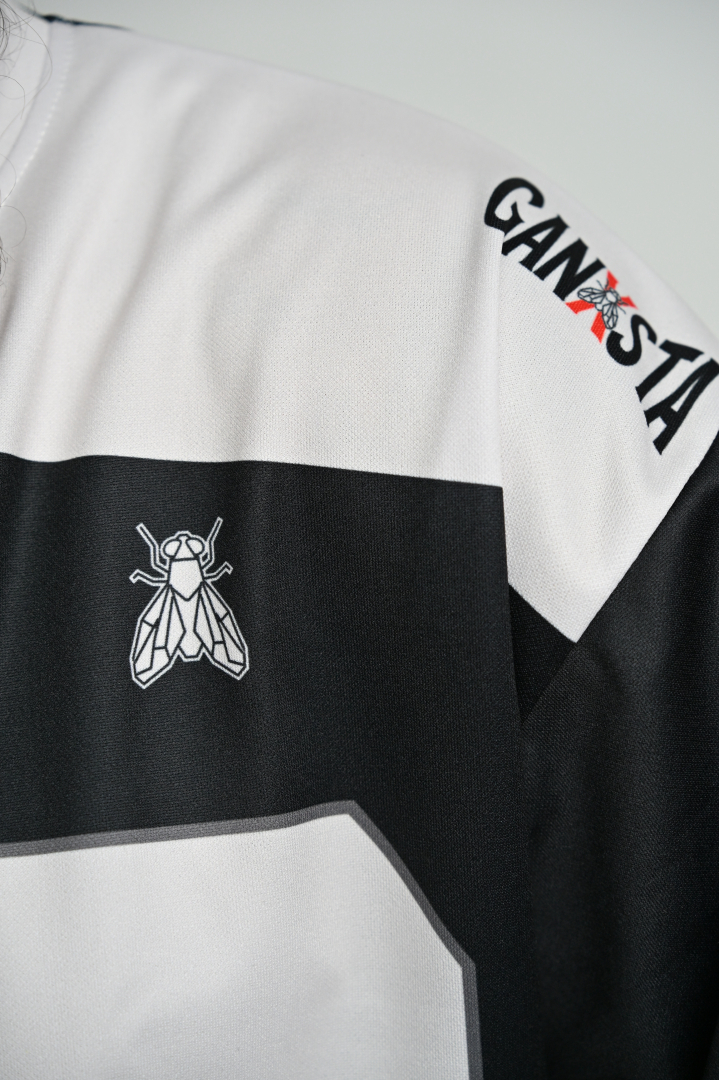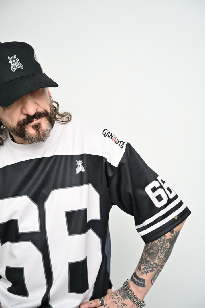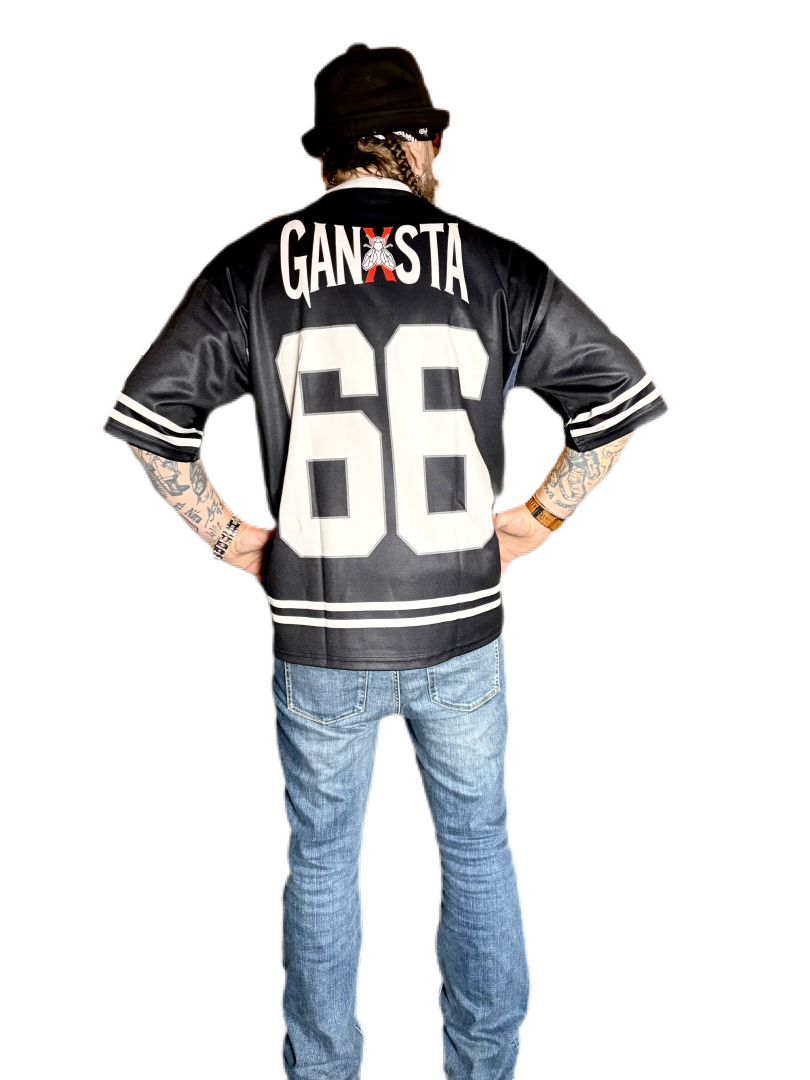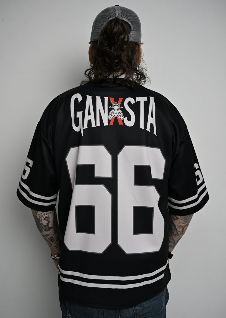 Ez a jersey egy igazi hip-hop mez, ami a rap világ energiáját hozza el Neked. Az oversized szabás és a markáns 66-os szám azonnal kiemel a tömegből. Elöl a legendás légy logó kapott helyet, hátul az ikonikus GANXSTA felirat üzen mindenkinek, a vállakon ismétlődő Ganxsta print pedig erőt ad a megjelenésednek.