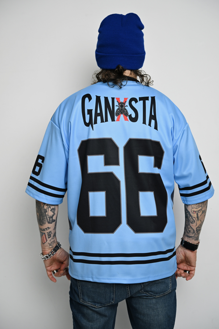 Ez a jersey egy igazi hip-hop mez, ami a rap világ energiáját hozza el Neked. Az oversized szabás és a markáns 66-os szám azonnal kiemel a tömegből. Elöl a legendás légy logó kapott helyet, hátul az ikonikus GANXSTA felirat üzen mindenkinek, a vállakon ismétlődő Ganxsta print pedig erőt ad a megjelenésednek.