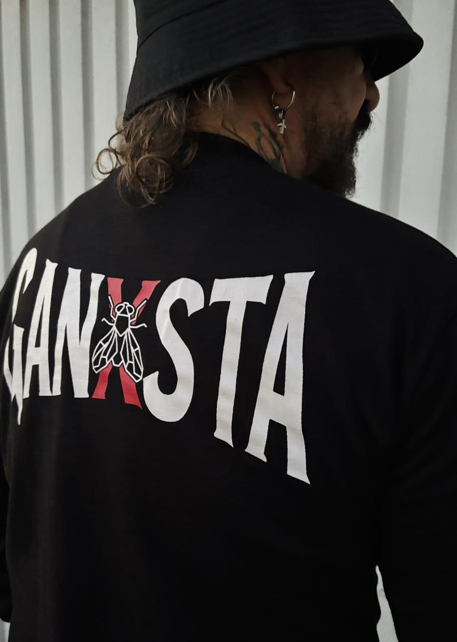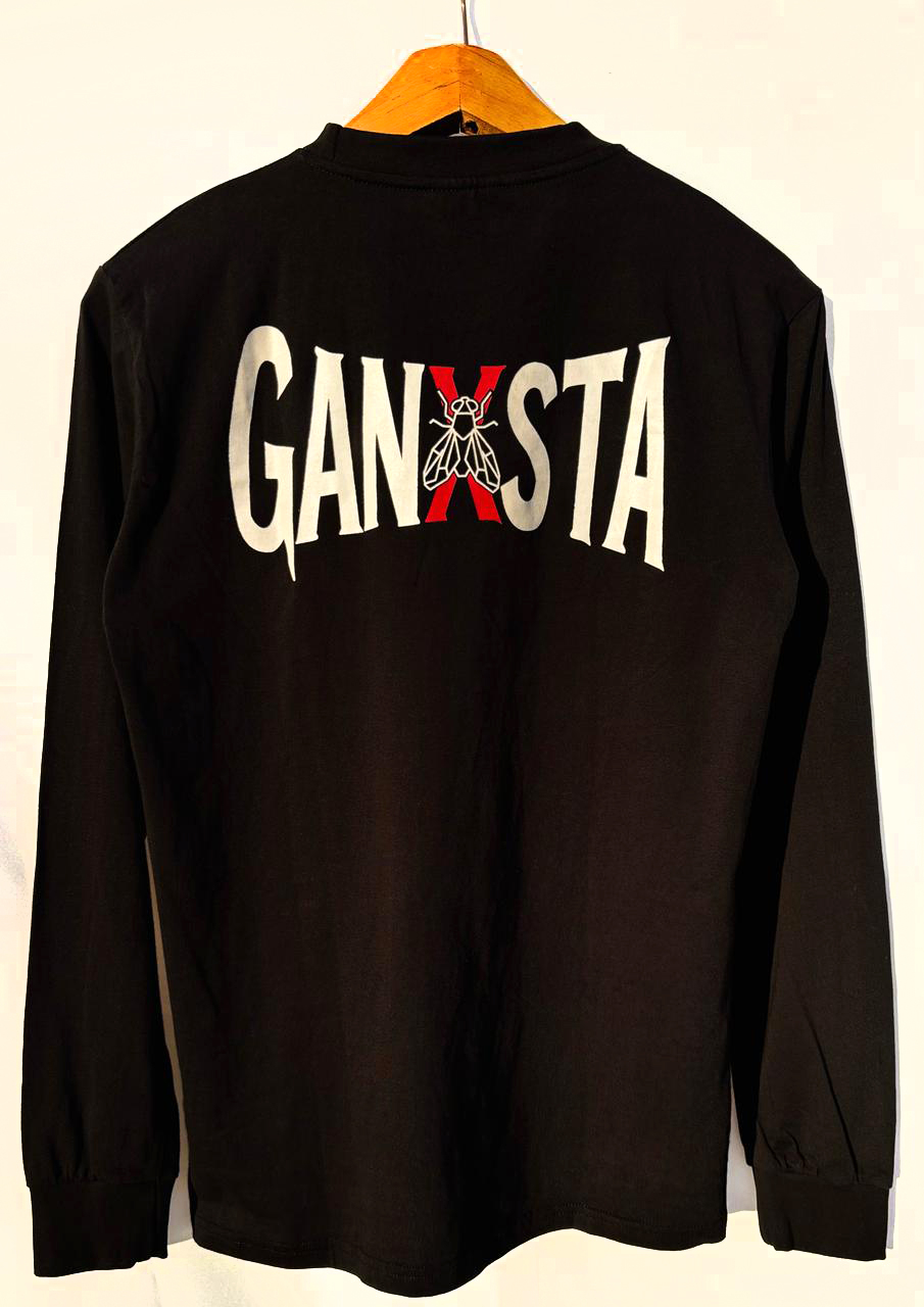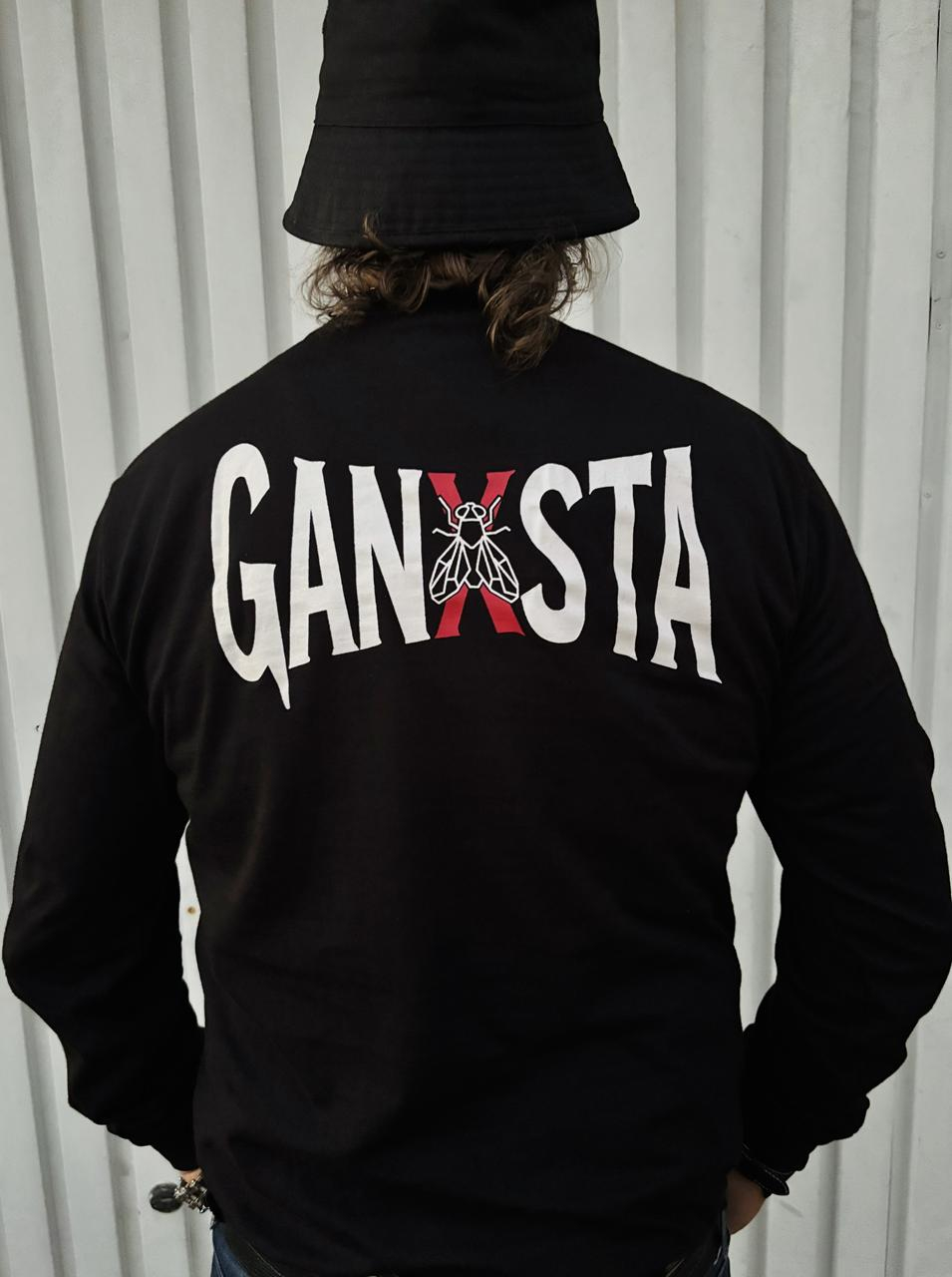 Ez a fekete hosszú ujjú póló nem csak alapdarab, hanem a stílus nyilatkozata. Elöl letisztult, minimalista légy hímzés, hátul az ikonikus, extra méretű GANXSTA felirat, ami mindenhol üzen: itt vagy. A hosszú ujjnak köszönhetően egész évben hordható – koncerteken, utcán vagy bárhol, ahol meg akarod mutatni, ki a főnök.