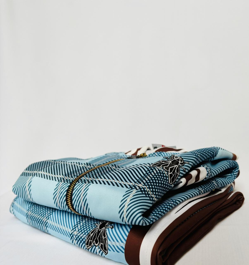 • Egyedi kék kockás dizájn – karakteres, vagány, és pont annyira különc, amennyire kell