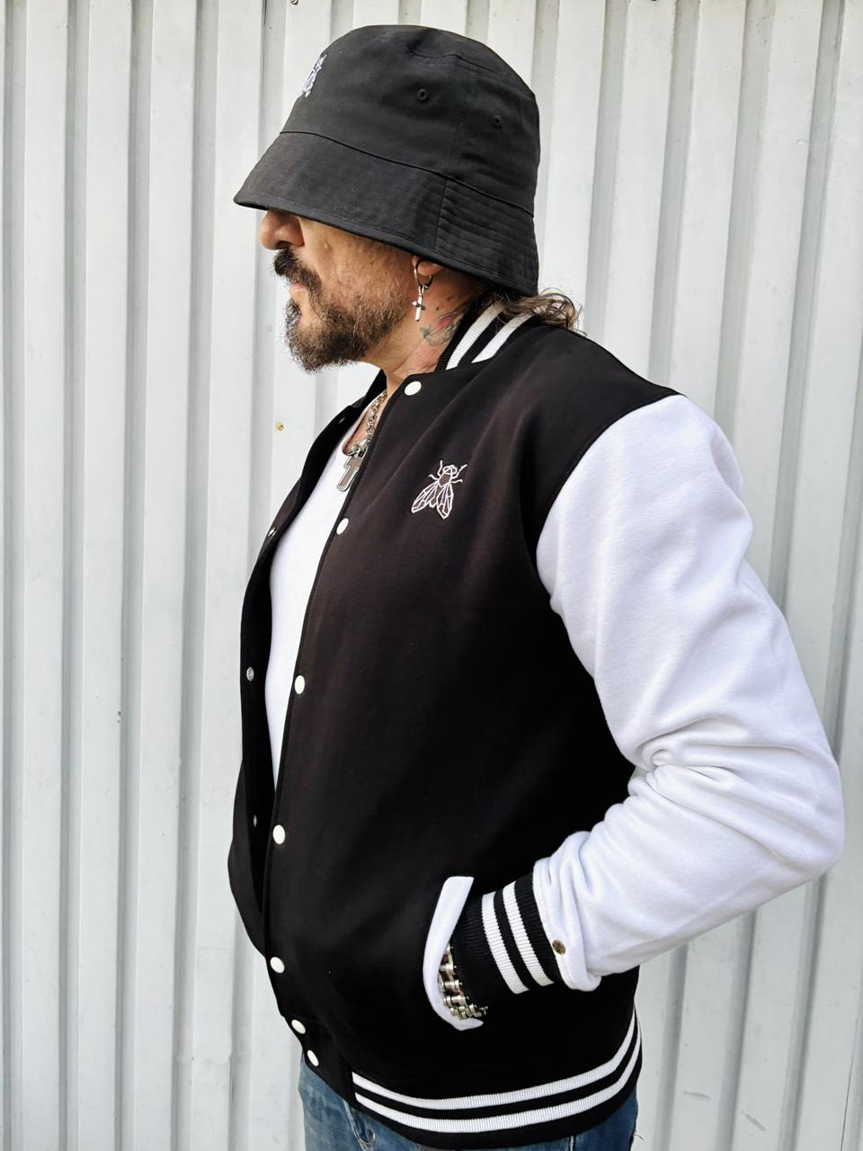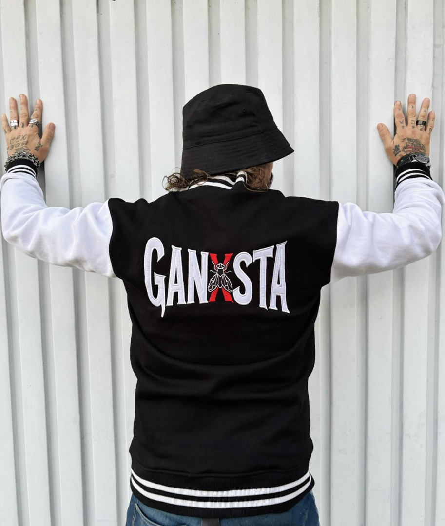 Ez a fekete-fehér varsity baseball sweater nem csak egy felső, hanem a Ganxsta életstílus kézzelfogható darabja. Elöl a legendás légy hímzés díszíti, hátul pedig az extra méretű GANXSTA felirat üzen mindenkinek: itt vagy. A fehér ujjak, a fekete test és a sportos csíkok a nyaknál, ujjvégen és deréknál hozzák vissza a klasszikus baseball–college hangulatot, amitől ez a darab azonnal kiemelkedik. Az ujjon a fém légy logó pedig extra prémium részlet, ami megkoronázza a megjelenést.